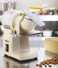 This Santos Cheese Grater 02 is powerful and sturdy. Comes with 1 standard disc assembly with 3 mm holes. Ideal for cheese shops, supermarkets, pizzerias, cake shops. A wide range of discs is available to grate hard and soft cheese, chocolate, peanuts and dried fruits. This model facilitates cleaning and maintenance (removable housing and disc).