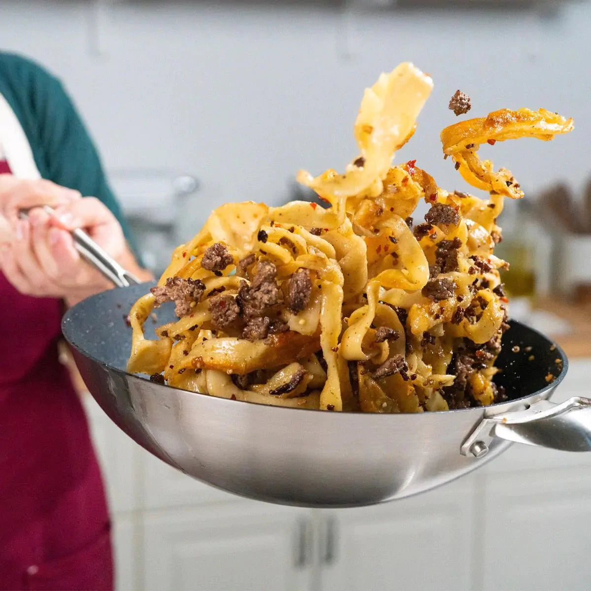 Stir fry and sauté with or without oil in this durable 12.5” Wok, compatible with all stove tops.