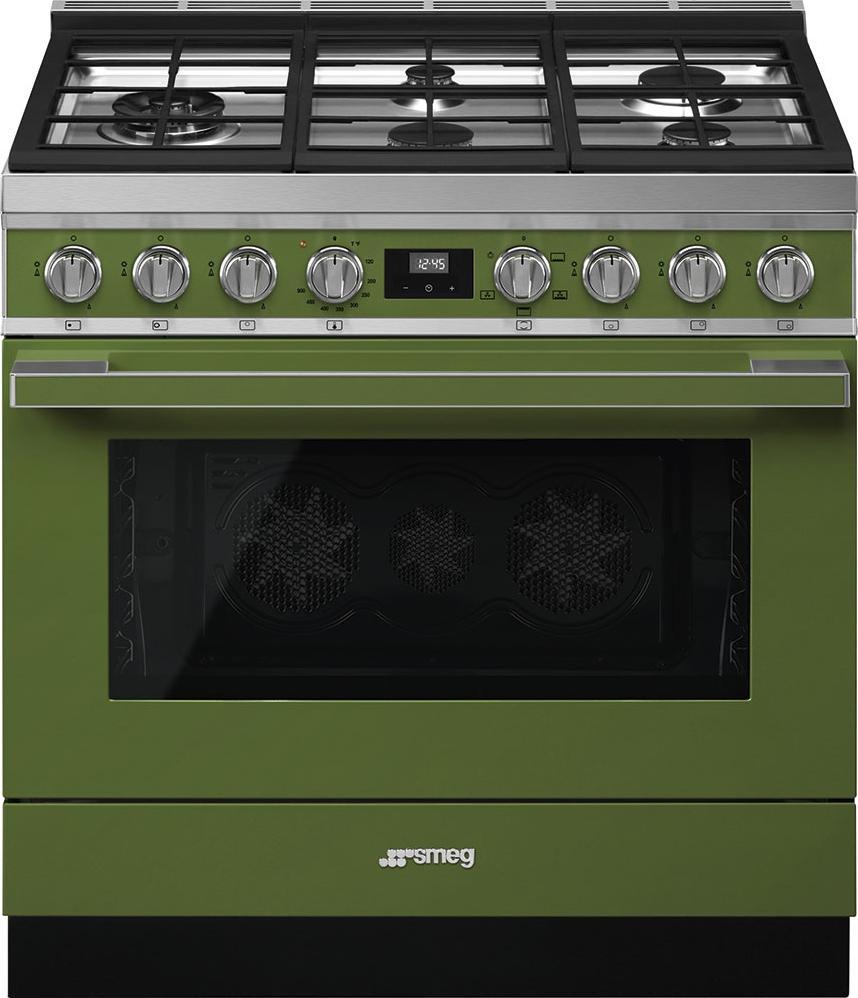 Smeg - Portofino 36" Green Stainless Steel 5-Burner Gas Range - CPF36UGGOG (Special Order Item)