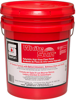 Spartan - White Sun 5 Gallon Floor Finish Pail, a transformative solution that goes beyond the ordinary to enhance the appearance of your floors. White Sun is designed to diminish the look of imperfections upon application, giving flooring surfaces a renewed and flawless aesthetic. Experience a better-than-ever appearance as this floor finish automatically addresses blemishes, creating a pristine and polished look.