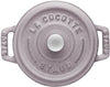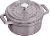 The Staub 0.26 QT Mini Cocotte in Cherry Blossom is a versatile and stylish addition to your kitchen, designed for gently cooking a variety of dishes. This round, cast-iron, enamelled cocotte features two handles and a snug-fitting lid. With a diameter of 10 cm and a height of 7 cm (without the lid), it has a capacity of 0.25 litres, making it perfect for individual portions, side dishes, or desserts. The enamel coating ensures even heat retention and distribution, while the black enamel interior preserves the flavor of your food. Suitable for all types of cookers and ovens, this mini cocotte can also be used as a baking tin for small cakes or to store fresh desserts. Part of the La Cocotte series, this cookware combines functionality with an aesthetic design, and is easy to clean, making it ideal for both sweet and savory dishes. Enhance your cooking experience with the Staub 0.26 QT Mini Cocotte, perfect for creating delicious, carefully prepared dishes with ease.