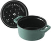 The Staub 0.26 QT Mini Cocotte in Eucalyptus is a versatile and stylish addition to your kitchen, designed for gently cooking a variety of dishes. This round, cast-iron, enamelled cocotte features two handles and a snug-fitting lid. With a diameter of 10 cm and a height of 7 cm (without the lid), it has a capacity of 0.25 litres, making it perfect for individual portions, side dishes, or desserts. The enamel coating ensures even heat retention and distribution, while the black enamel interior preserves the flavor of your food. Suitable for all types of cookers and ovens, this mini cocotte can also be used as a baking tin for small cakes or to store fresh desserts. Part of the La Cocotte series, this cookware combines functionality with an aesthetic design, and is easy to clean, making it ideal for both sweet and savory dishes. Enhance your cooking experience with the Staub 0.26 QT Mini Cocotte, perfect for creating delicious, carefully prepared dishes with ease.