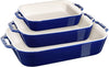 The Rectangular Baking Dish Set features three nestable rectangular bakers for all your sweet and savoury baking needs, whether you’re cooking for a crowd or just for two. STAUB stoneware bakers gently retain heat and won't absorb moisture, producing a delicious result for all of your favourite recipes. These baking dishes are ideal for lasagna, casseroles, and desserts, as well as roasted meats and vegetables, and they transition beautifully from oven to table. The elegance and functionality of STAUB ceramics goes from freezer to oven to table. The glass porcelain finish matches all STAUB cast iron to mix perfectly at the table. Oven and broiler safe up to 572°F, ceramics can also be used in the microwave and are dishwasher safe, as well as highly scratch, impact, and thermal shock resistant.