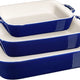 Set includes 3 nesting rectangular dishes: 7.5" x 6" baking dish, 10.5" x 7.5" baking dish, and 13" x 9" baking dish.
