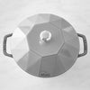 Experience culinary excellence with the Staub 3 QT Diamond Cast Iron Cocotte in Graphite Gray, a masterpiece designed to elevate your cooking and dining experience. Inspired by the shape of a diamond and featuring a sparkling knob that echoes its design, this cocotte is a true eye-catcher on any dining table. The elegant Graphite Gray color pays homage to truffles, often hailed as the "diamond of the kitchen" by French gourmet Brillat-Savarin. Crafted from high-quality cast iron and enamelled for exceptional cooking performance, this cocotte ensures even heat distribution and long-lasting heat retention. The tight-fitting cast iron lid seals in moisture, keeping food juicy and tender during cooking. Versatile and robust, it can be used on all types of hobs, including induction, as well as in the oven, making it ideal for a wide range of recipes. With a generous capacity of 2.8 liters and high sides, it can comfortably serve a main course for 4 people or a side dish for larger gatherings of family and friends. This special cocotte is not only a practical kitchen essential but also a stunning gift for food enthusiasts or special occasions like diamond weddings or anniversaries, adding a touch of elegance and functionality to any kitchen.