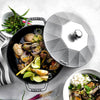 Luckily this secret actually isn’t that secret, so we are happy to share it. Let’s start with the specially-contoured lid and its excellent moisture-retention properties. Its self-basting system ensures a continuous rainfall effect evenly over the cocotte’s contents. This guarantees that each ingredient retains its full flavor. Meat does not dry out and vegetables remain tender.