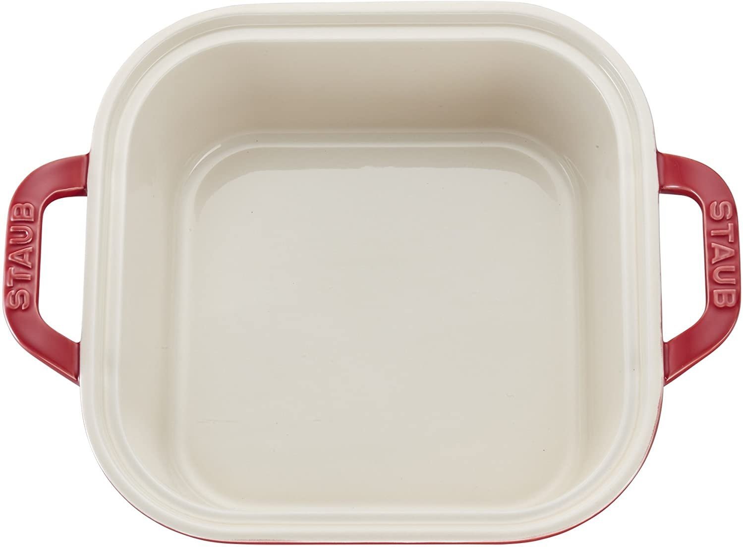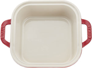 The 9"x 9" Square Covered Baker allows you to bake and serve in the same dish - plus, its lid locks in heat to keep your food warm. Equally beautiful and durable, the bakeware is extremely resistant to impact and thermal shock. Its gorgeous vitreous glass porcelain enamel finish puts a pop of colour in your kitchen. The elegance and functionality of STAUB ceramics goes from freezer to oven to table. The glass porcelain finish matches all STAUB cast iron to mix perfectly at the table. Oven and broiler safe up to 572°F, ceramics can also be used in the microwave and are dishwasher safe, as well as highly scratch, impact, and thermal shock resistant.