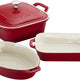 4 pc set includes: 9" x 9” Square Covered Baker (23 x 23 cm), 9” Oval Baking Dish (23 cm), 7.5" x 6” Rectangular Baking Dish (19 x 15 cm)