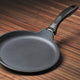 Giant pancakes and perfect omelettes have never been easier to make at home. The 26 cm (10.25”) nonstick crepe pan is ideal for breakfast and beyond. Its unique sloping sidewall, across from the ergonomic handle, makes it easy to flip, fold and serve your creation. No more using double spatulas to try to turn over that pancake! Its patented design was a finalist in the Housewares Design Awards. In addition to an innovative design, the crepe pan features a cast aluminum body for even heat distribution and no warping, along with the diamond-reinforced Swiss Diamond nonstick coating. Used by discerning home chefs around the world, Swiss Diamond’s PFOA-free cookware features unsurpassed nonstick performance for healthy cooking and easy clean-up.