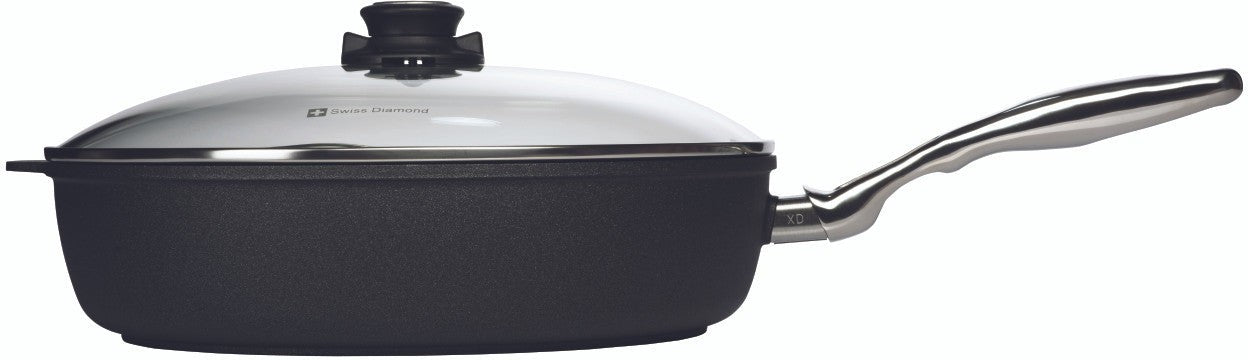 The Swiss Diamond XD series features a reinforced nonstick surface (real diamonds in a high quality composite) which provides years of trouble-free cooking and easy clean-up. Its extra thick, cast aluminum body with a perfectly-flat base will not tip/spin or warp as it provides uniform heat distribution. The rivet-free cooking surface provides maximum protection against bacteria while the comfortable, ergonomic handles are designed to stay cool on the stovetop. Oven safe to 500°F (260°C).
