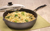 The cookware's pressure-cast aluminum construction provides for uniform heat distribution with no hot spots or warping - even if the pan is placed under cold running water right off the stove. Each piece has a perfectly flat base for use on any ceramic, gas or electric cooktop (induction series also available.)