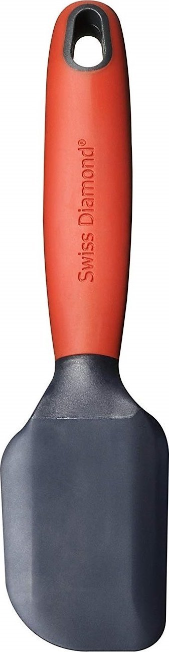 NO MORE MESS! Swiss Diamond kitchen tools are designed with a raised head and balanced stand to keep them from touching the countertop. Reinforced silicone handles withstand temperatures up to 480°F (250°C). Dishwasher safe. This set includes 5 items: a turner to easily lift and turn food, with a serrated side to cut delicate items; a batter spatula with a flexible curved head, making it simple to remove every drop of batter from the bowl, or lift left-overs in one piece; a pair of tongs featuring a notched handle to perch on the side of the pot while you're cooking, and a slotted head to quickly drain excess liquid; a ladle with a deep conical bowl designed to get the last drop of liquid, and flared spouts on each side to make pouring easy; and a skimmer, whose shallow design makes skimming the bottom of the pot simple, while the wide spoon catches large pieces with ease.