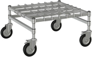 Mobile Dunnage Rack, channel, 36"W x 24"D x 12"H, (1) channel dunnage shelf with wire mat, (1) 3-sided frame, (4) posts, 1200 lbs. capacity, PolySeal clear epoxy finish, 5" swivel casters with polyurethane tread (2 braked). Actual item may differ from image.