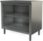 Servery Work Table, open front cabinet base, 42"W x 24"D, flat top with H-style hat channels, adjustable intermediate shelf, reinforced frame, full welded stainless steel construction, 6" adjustable stainless steel legs. Actual item may differ from image.