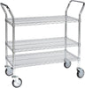 Utility Cart, 3-tier, 60"W x 24"D x 38"H, (3) wire shelves, includes (2) chrome U-shaped push handles, 1200 lbs. maximum capacity, chrome finish, 5" swivel casters. Actual item may differ from image.