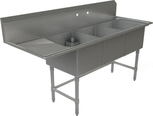 Tarrison - 75" 18 Gauge Stainless Steel Sink with Three Compartments & Left Drainboard - CDS3-18L