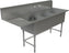 Sink, 3-compartment, 75"W x 27"D x 45"H overall size, (3) 18"W x 21" front-to-back x 13" deep compartments, (1) 18" left drainboard, 10"H backsplash, (1) set of splash mount faucet holes with 8" centers, 1-1/2" diameter bullnose edge on front & sides, (3) corner drains, includes (3) overflow tubes & (3) 8"H perforated drain guard assemblies, 18 gauge stainless steel construction, galvanized legs with side & rear bracing, adjustable bullet feet, cNSFus, KD. Actual item may differ from image.