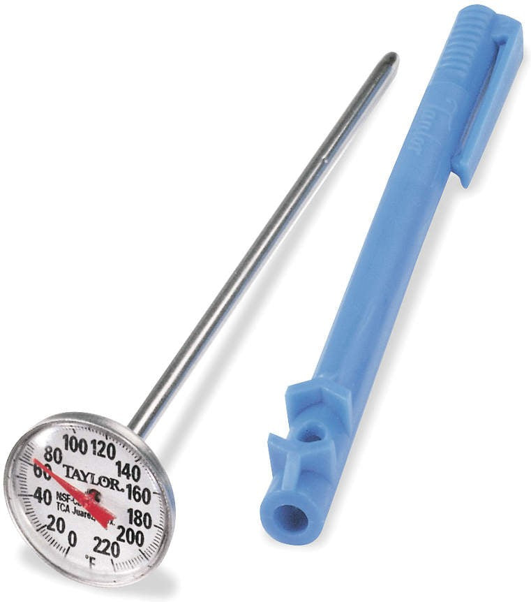 Equipped with a sensitive and accurate temperature sensor, the Taylor Instant Read Dial Thermometer delivers fast and reliable temperature readings within a wide range, making it suitable for various culinary tasks. Whether measuring the internal temperature of meats, poultry, fish, or monitoring the temperature of soups, sauces, or beverages, this thermometer provides consistent and accurate results to ensure optimal cooking results and food quality. The thermometer's instant-read capability allows for rapid temperature measurement, providing real-time feedback to chefs and cooks during cooking and food preparation. With its quick response time, users can easily monitor temperature changes and adjust cooking techniques accordingly, ensuring that food is cooked to perfection every time. The Taylor Instant Read Dial Thermometer features a convenient pocket-sized design, allowing users to carry it with them wherever they go. Whether working in a professional kitchen or cooking at home, this compact thermometer is easy to transport and use whenever temperature measurement is required.