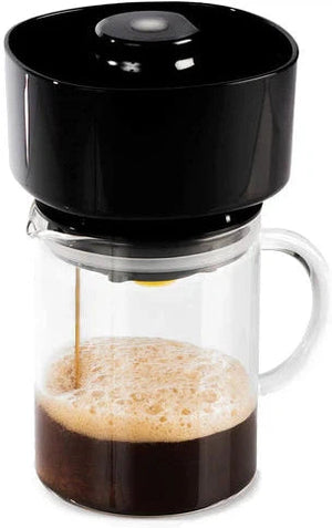 The VacOne Air Brewer is a unique 2-in-1 coffee and cold brew maker that utilizes patented technology to brew delicious coffee and cold brew in minutes. Our exclusive Vac-Tec technology uses a high-pressure vacuum, allowing you to brew both coffee and cold brew at the touch of a button. Enjoy a smooth and velvety cup of hot coffee in under a minute, or a glass of sweet and intense cold brew in only 4 minutes. Out of the box, the VacOne contains everything you need to start brewing amazing coffee or cold brew. Simply add coffee grounds and water to the chamber, let the coffee steep and press the button on the top of the chamber. The coffee will flow into the included carafe crafted from quality borosilicate glass that is resistant to thermal shock and will not impart any flavors into your coffee. The brewer is also an eco-friendly brewing system as it utilizes a stainless steel mesh filter system and eliminates the need for paper filters. In addition, the brewer can be charged via USB from your computer in under 2 hours with one charge allowing you to brew 100 cups of coffee. Fast and easy to use, The London Sip Vac One Air Brewer will make the most memorable cup of coffee or cold brew you have ever made at home. a quick cup on the go, or easily share with friends. Start pouring with London Sip today!