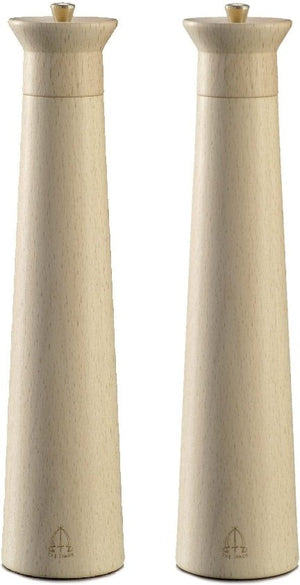 This high performance designer pepper mill is equipped with the exclusive Tre Spade grinding mechanism featuring long-lasting durability and precise adjustment of grind settings. It is a handcrafted product made in Italy. The steel shaft has an anti-rust surface coating. PEFC-certified beech wood ensures the correct and responsible management throughout the entire production chain according to strict environmental, social, and economic standards.