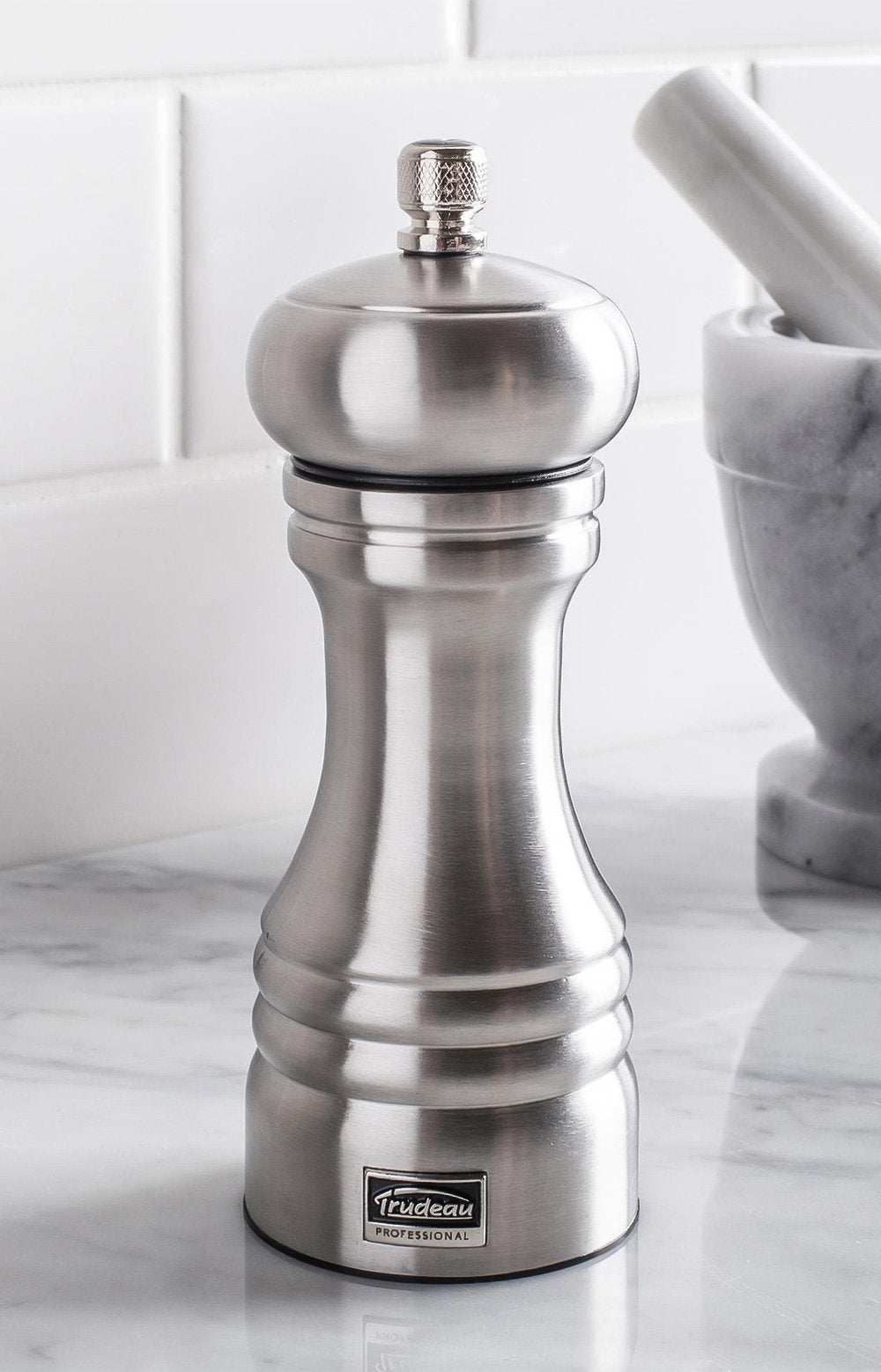To enhance your food, use the Trudeau Professional Salt Mill which blends ease of use with reliability. Its grinding mechanism made of high-quality wear-resistant stainless steel alloy prevents sea salt corrosion and is designed to crush salt crystals to a fine powder. To adjust the mill, simply turn the knob clockwise for a finer grind and counter clockwise for a coarser grind. You'll surely find the Salt Mill you are looking for amongst the Professional collection's many elegant finishes.