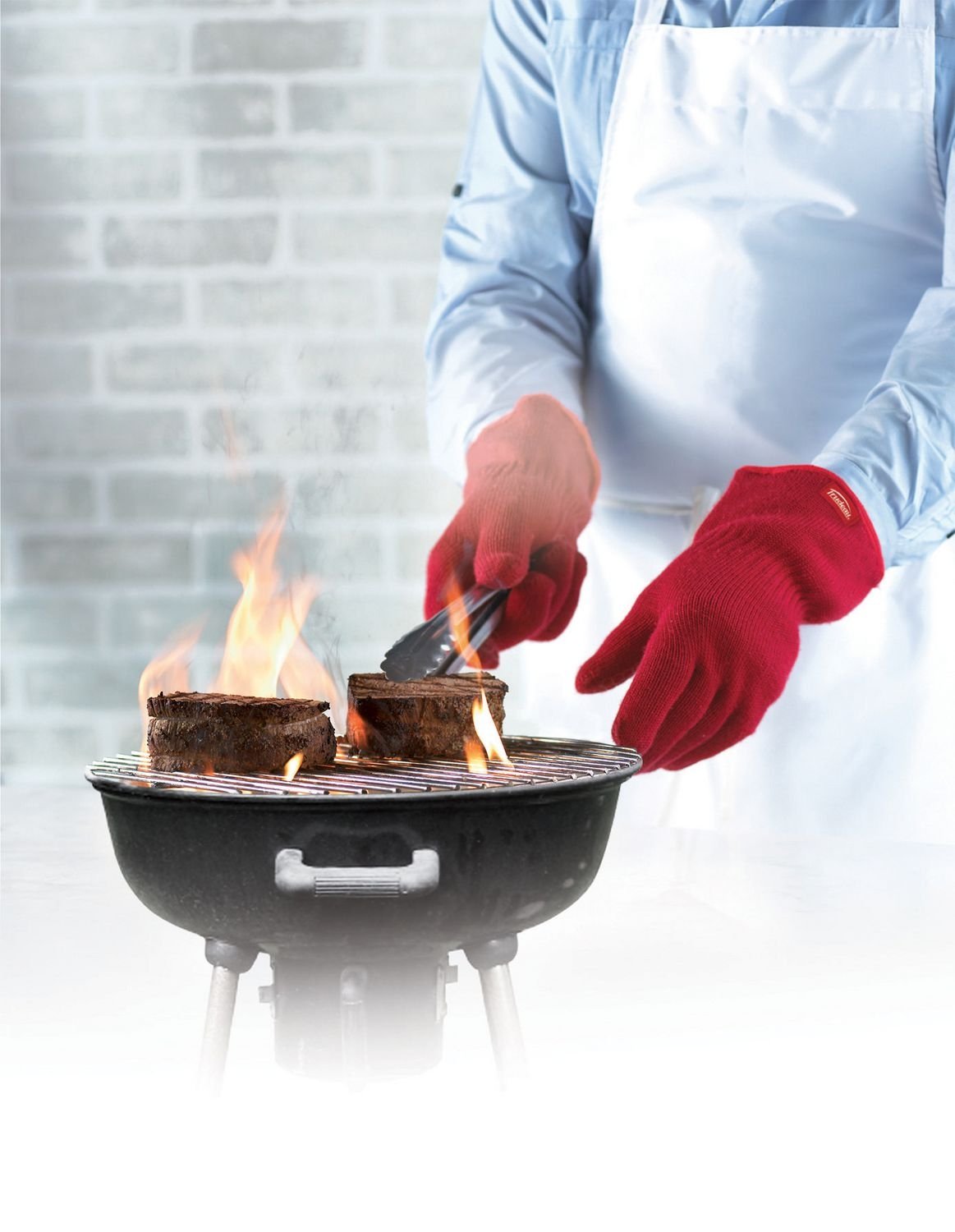 In the kitchen or on the grill, get ready to cook hands-on no matter how high the temperature. Made out of aramid fibers, the Trudeau Maison Stay Cool Kitchen Gloves protect your most important BBQ tool: your hands! Heat resistant up to 428 °F (220 °C), these essential gloves are long enough to protect your forearms from flames. They also have an anti-slip silicone grip.
