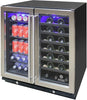 The Vinotemp 30" Wine & Beverage Cooler (Model EL-30SWCB2D) is the ultimate addition for those who love to entertain, offering versatile storage for both wine and beverages. Designed with two independent temperature zones, it provides optimal conditions for both red and white wines as well as canned drinks. The cooler features a sleek all-black design with seamless stainless steel doors, enhancing the aesthetic of any kitchen or bar. With a built-in lock for added security and advanced digital controls, this unit offers convenience and style.
