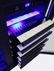 - Soft blue LED interior lighting enhances visibility and showcases your collection.