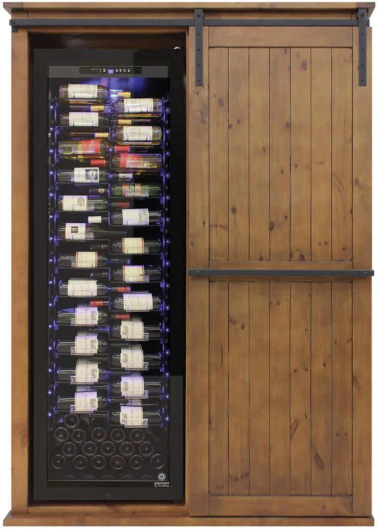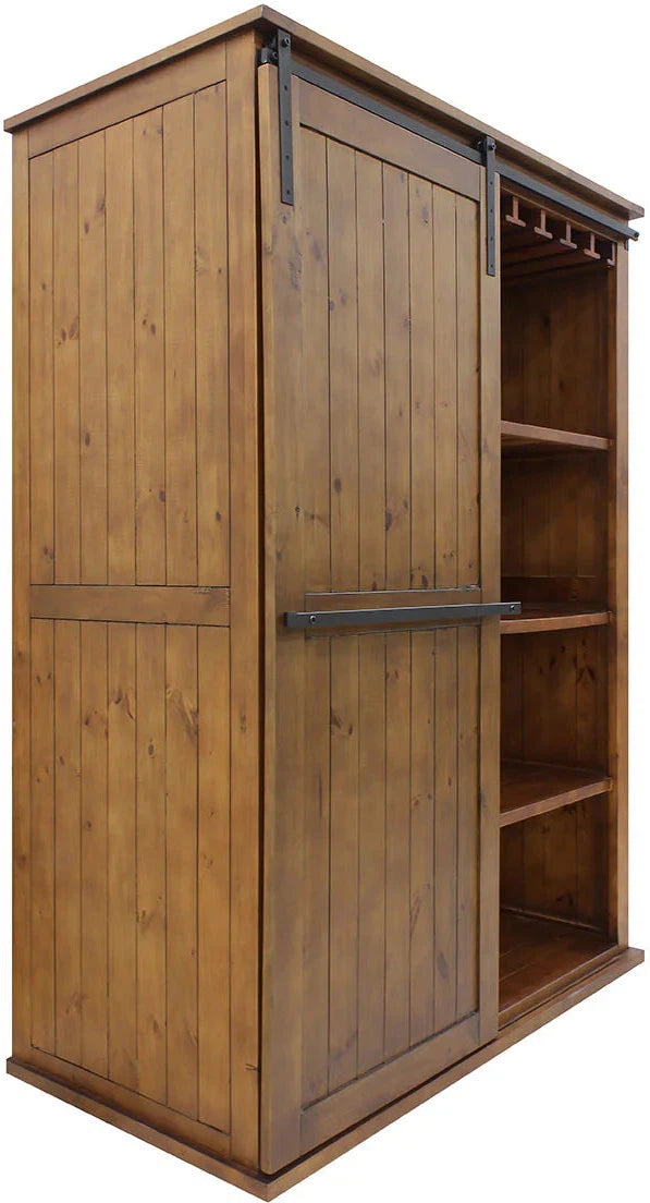 - Barn Style Sliding Door: Opens to reveal storage space for a tall wine cooler, glassware, and accessories, combining functionality with rustic charm.