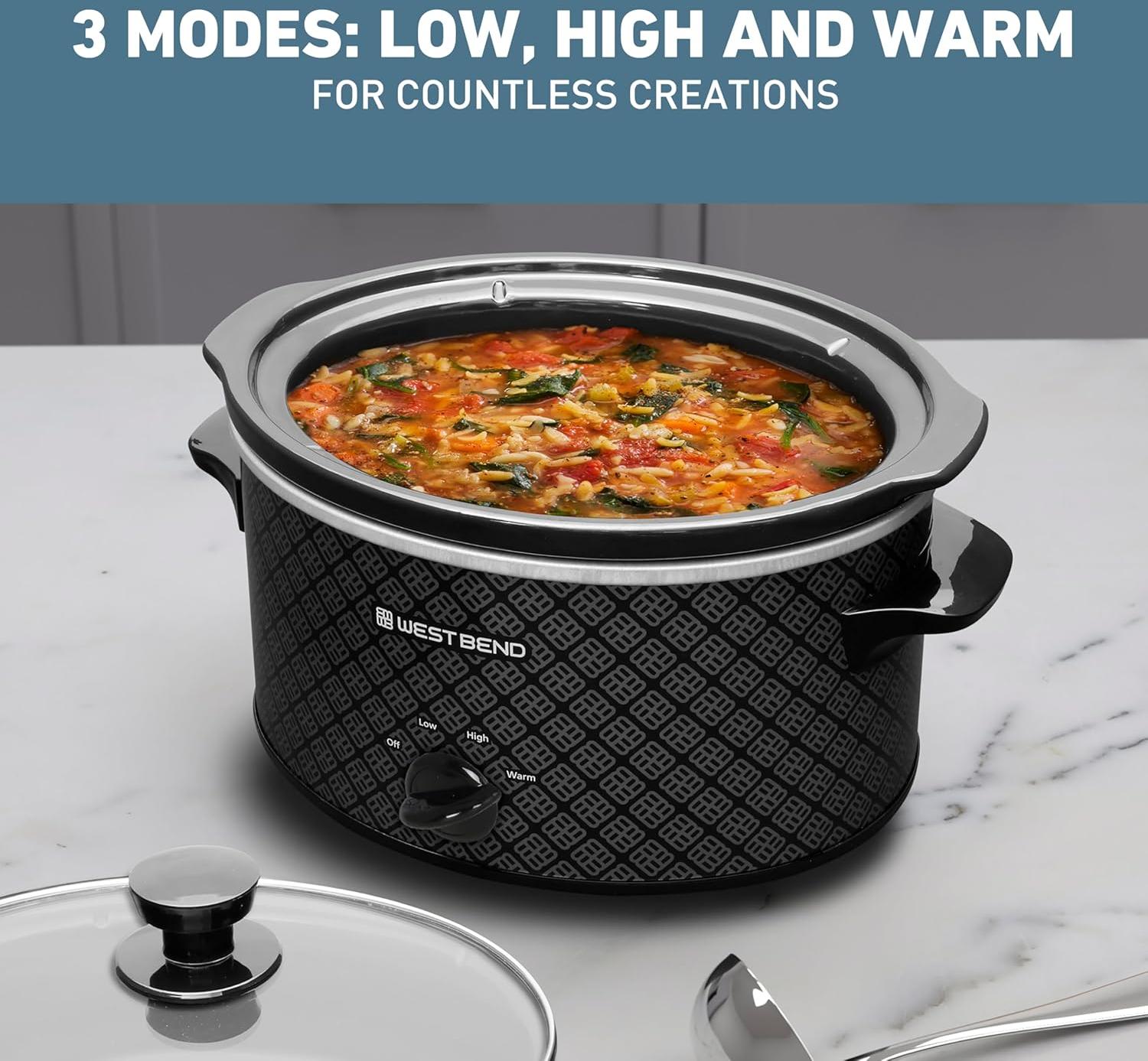 The West Bend 4-Quart Manual Slow Cooker (Model SCWB4QPTBK13) is a versatile and user-friendly appliance designed to simplify your cooking experience. With its 4-quart capacity, it's ideal for preparing meals for families or small gatherings.