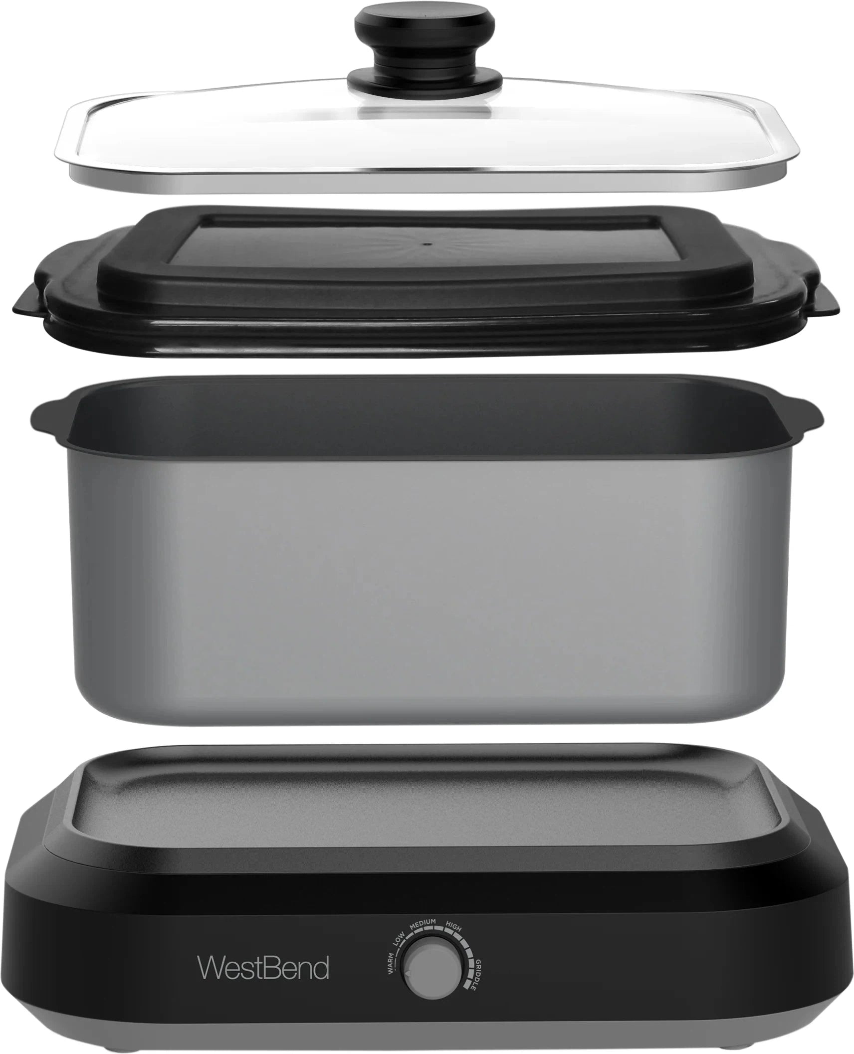 West Bend - 5 QT Black & Silver Versatility Slow Cooker with Tote Travel Bag - 87905