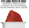 - Fits large pieces of meat:- The large chute on the manual meat tenderizer fits big pieces of meat up to 4.5" wide and .75" thick. Perfect for tenderizing thick steaks, chicken breasts, pork cutlets and more.