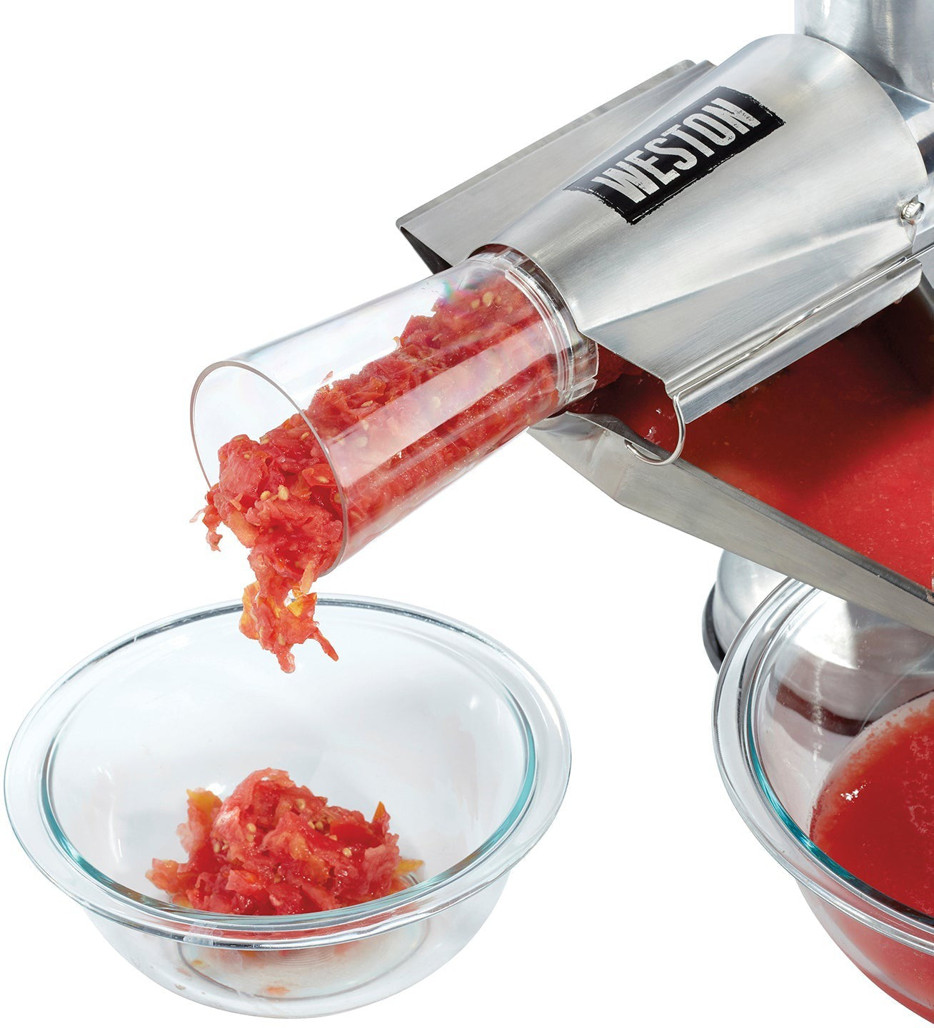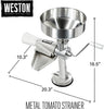 With dishwasher-safe parts, the Weston Metal Tomato Strainer makes it easy to enjoy the healthy flavors of homemade applesauce, tomato purees, fresh juices, salsa, baby food, jam and more.