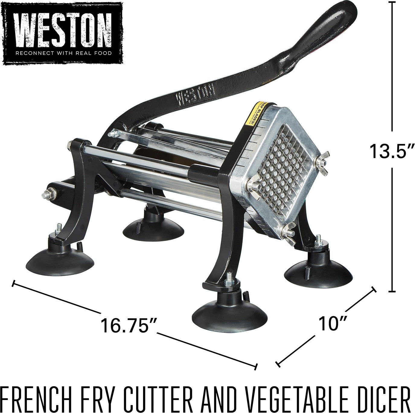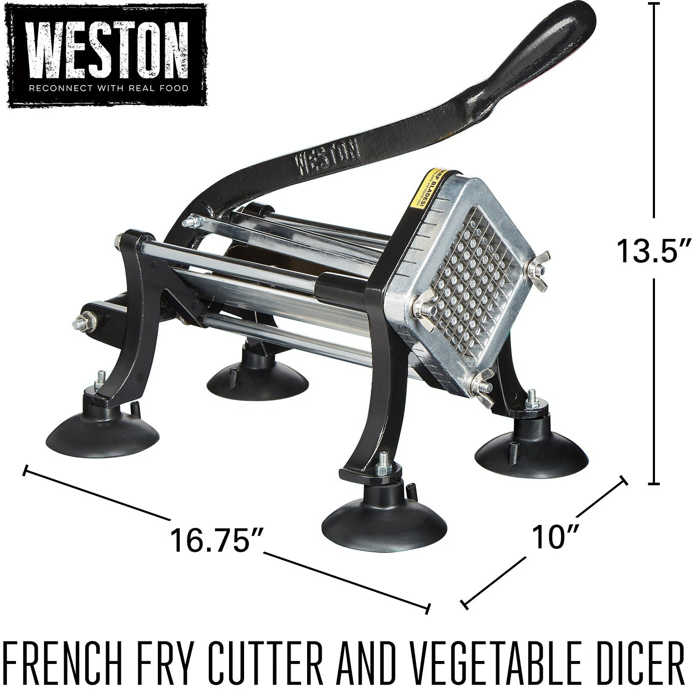 Elevate your kitchen efficiency and take your culinary creations to the next level with the Weston Restaurant Quality French Fry Cutter. This premium kitchen tool is designed to transform humble potatoes into perfect, uniform French fries, just like those you'd find in your favorite restaurant. Whether you're a home chef, a food enthusiast, or a professional cook, this French fry cutter will become an indispensable addition to your kitchen arsenal. Upgrade your kitchen equipment and make meal preparation a breeze with this exceptional French fry cutter. With the Weston Restaurant Quality French Fry Cutter, you can replicate the taste and presentation of your favorite restaurant-style French fries in the comfort of your own home. Impress your family and guests with perfectly cut fries that are sure to be a crowd-pleaser.