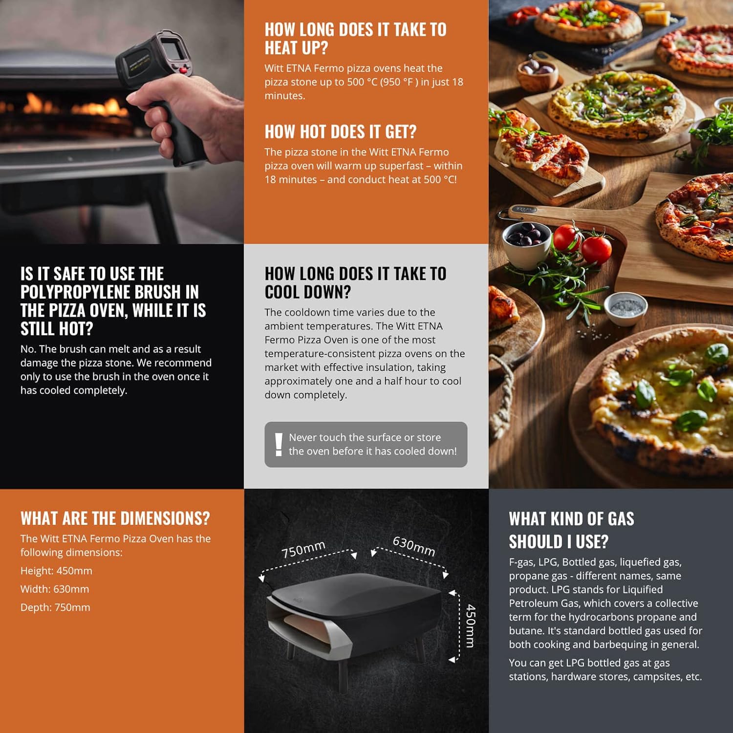 - Temperature Range: Preheats to 500°C (950°F) in under 15 minutes