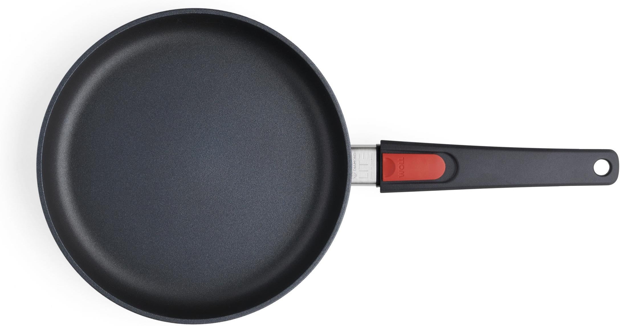 Designed for convenience and versatility, this frypan features a black detachable handle that allows for easy storage and handling. The handle can be removed with a simple press of a button, making it perfect for compact storage in kitchen cabinets or drawers. Additionally, the handle is ergonomically designed for a comfortable and secure grip, providing maximum control and maneuverability while cooking. With its generous 24 cm diameter, this frypan offers ample cooking space for preparing meals for the whole family. Whether you're cooking breakfast, lunch, or dinner, the Woll DIAMOND LITE Frypan can handle it all. From fluffy omelets and crispy bacon to juicy steaks and golden pancakes, the possibilities are endless with this versatile kitchen essential. Although this frypan does not come with a lid, its versatile design makes it suitable for a wide range of cooking techniques. Whether you prefer to cook with an open pan or use a separate lid from your cookware collection, the Woll DIAMOND LITE Frypan allows you to customize your cooking experience to suit your preferences.