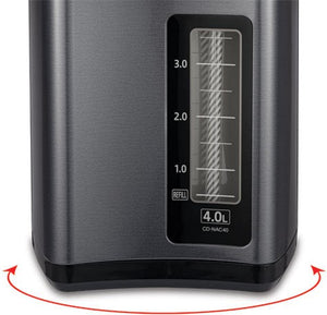 Introducing the Zojirushi 5 L Micom Water Boiler & Warmer (CD-NAC50BM), your ultimate solution for instant hot water on demand. Whether you're brewing your favorite tea, making coffee, or preparing instant meals, this versatile appliance ensures you have hot water ready whenever you need it. Its advanced features and large capacity make it perfect for families, offices, and gatherings. A Micom Water Boiler & Warmer with a contemporary design. 4 keep warm temperature settings (160°F, 175°F, 195°F, 208°F) ideal for making anything from green tea to French press coffee to perfection. Water level lines on the interior make filling with the right amount of water easy.