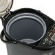 Makes filling with the right amount of water easy. Interior is made of stainless steel and is nonstick coated.