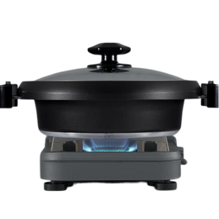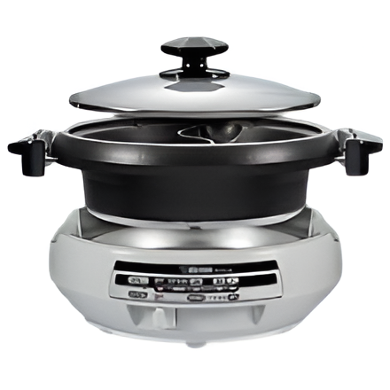 - Deep pan (3-1/8" deep) with a divider to enjoy two types of hot pot at once