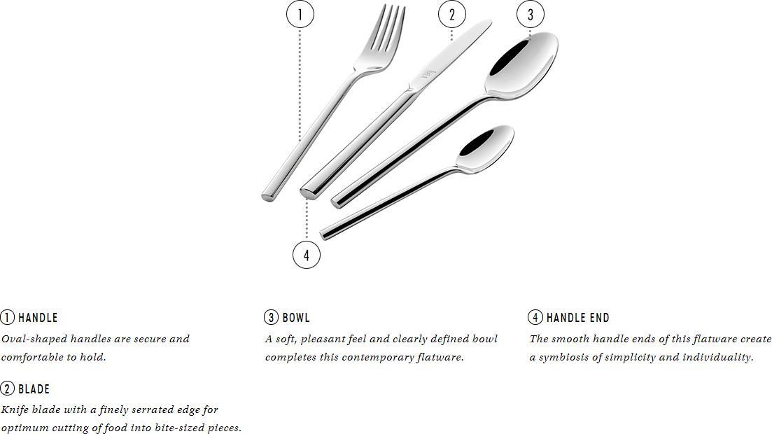 The quality in the wide selection of Zwilling flatware guarantees a long service life. Each piece has a soft, pleasant feel that completes the contemporary flatware. The solid handles lie pleasantly in the hand and leave no doubt as to the quality of the flatware. Zwilling flatware has an appealing design that not only looks chic but is also key to their functionality.