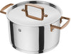 Elevate your culinary creations with the ZWILLING Bellasera 6 L Stainless Steel Stock Pot with Lid. This high-quality stock pot from the Bellasera series is designed for those who enjoy experimenting with new ingredients while relying on dependable, premium cookware. Featuring a stylish design with shiny rose and extravagant lid handles, this stock pot is both functional and aesthetically pleasing. It is suitable for all stovetops, including induction, and can also be used in the oven, offering versatility in your cooking endeavors. Enhance your cooking experience with the ZWILLING Bellasera 6 L Stainless Steel Stock Pot with Lid, combining high-quality materials, versatile functionality, and a sleek design to ensure every meal is a success.