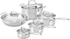10-piece set includes 1.0 Qt. Saucepan with Straining Lid, 2.0 Qt. Tall Saucepan with Straining Lid, 3.0 Qt. Saucepan with Straining Lid, 6.0 Qt. Stockpot with Straining Lid and 4.0 QT. 12” Multi-Use Pan.