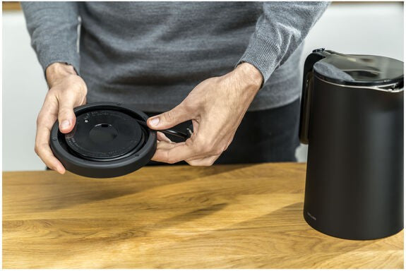 The lid lifts to a maximum of 70 degrees to prevent direct contact with hot steam. The snug-fit filter seals the kettle's spout when the lid is closed, preventing hot water from spilling.