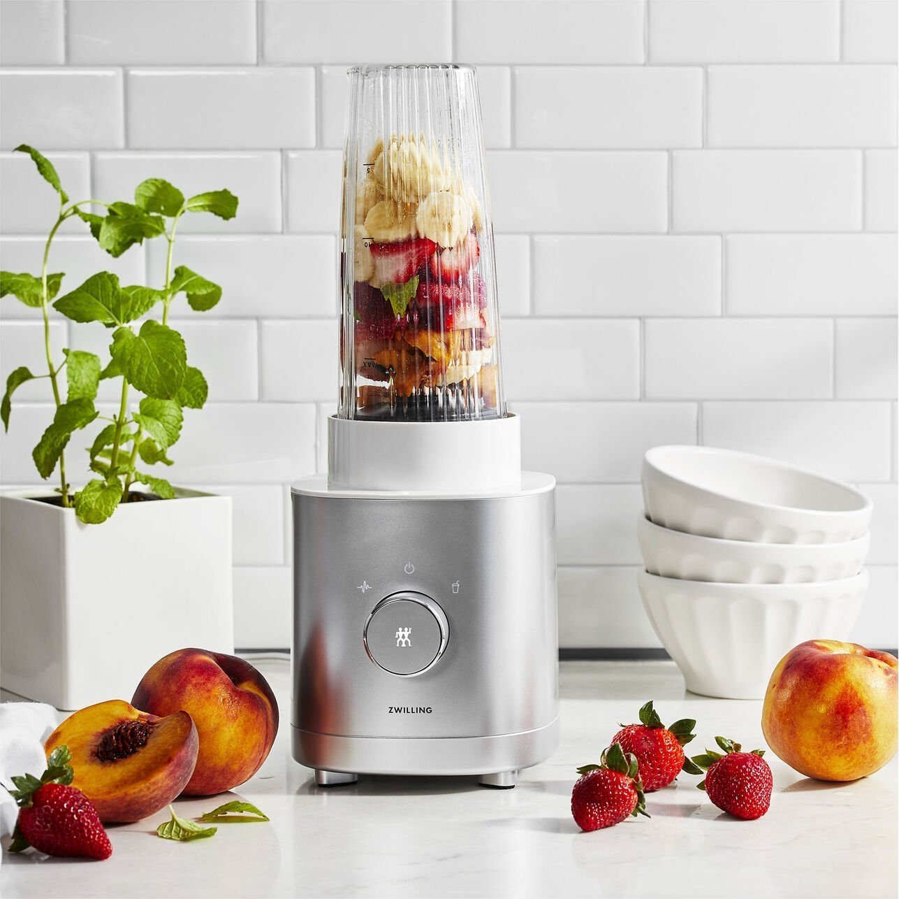 ZWILLING Enfinigy kitchen appliances combine contemporary design and German Engineering for beautifully functional appliances that complement the modern kitchen. This personal blender quickly whips up power drinks and smoothies in seconds. The drinking cup lid lets you take your smoothies to go.