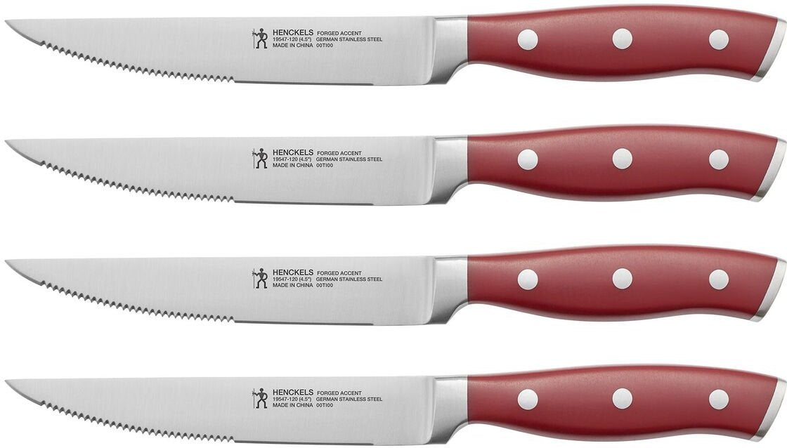 HENCKELS - Forged Accent 4 PC Steak Knife Set with Red Handle - 19547-004