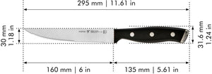 The FORGED ACCENT knife series is the definitive choice of hobby chefs seeking quality cutting performance and traditional style. Precision forged from high quality Stainless Steel, these blades have been tempered then honed for lasting sharpness. A full bolster provides added weight for perfect balance and the stylish three-rivet handles ensure a comfortable grip for easy cutting. Created in 1895 by Zwilling J.A. Henckels, this value-driven brand guarantees the same durability, design and ease of use for which the global company is known. Equip your kitchen with expertise with Henckels.