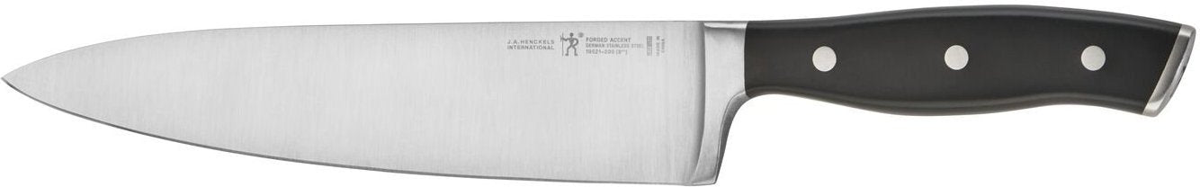 The FORGED ACCENT knife series is the definitive choice of hobby chefs seeking quality cutting performance and traditional style. Precision forged from high quality Stainless Steel, these blades have been tempered then honed for lasting sharpness. A full bolster provides added weight for perfect balance and the stylish three-rivet handles ensure a comfortable grip for easy cutting. Created in 1895 by Zwilling J.A. Henckels, this value-driven brand guarantees the same durability, design and ease of use for which the global company is known. Equip your kitchen with expertise with Henckels.