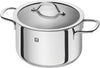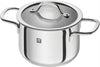 The ten-piece ZWILLING cookware set includes the 1.6 QT/1.5L Saucepan with Lid, the 2.1 QT/2.0L Saucepot with Lid, the 3.2 QT/3.0L Saucepot with Lid, the 3.8 QT/3.6L Stewpot with Lid and the 6.5 QT/6.0L Stockpot with Lid.
