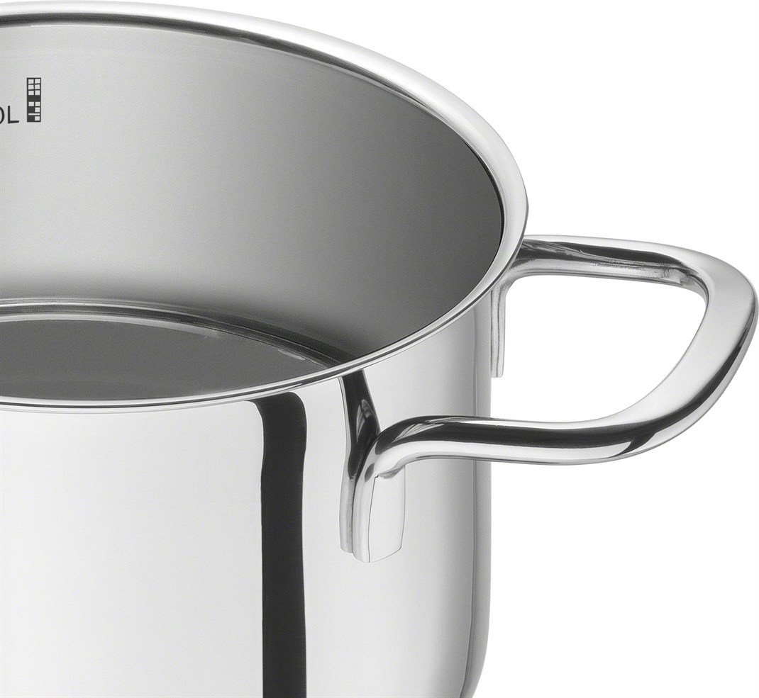 Sleek European design with high-gloss finish and tight-fitting glass lids retain moisture, lock in flavours and add visibility to the cooking process. The welded stainless steel carry handles stay cool to the touch. For easy clean-up, this set features drip-less pouring rims. As an added bonus, there is an integrated measuring scale for precise measuring. This stainless steel cookware is compatible with all cooktops including induction and is dishwasher-safe. Sleek European design combines functionality with style. Zwilling Neo makes it easy to enjoy home-cooked meals.