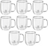 This set consists of eight (8) borosilicate double walled espresso mugs each (134ml). This material is insensitive to temperature fluctuations and is therefore ideal for both hot and cold drinks and is light yet strong. Each glass has perfect functionality, keeping hot drinks hot and cold items cold.